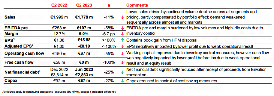 朗盛于8月4日发布了公司第二季度业绩,从下图中可以看出,总体还是呈现下降趋势的。而朗盛方面给出的原因,与其他家也是基本是一致的。但是朗盛的这份报告中比较有看点的是,朗盛对此提出了一些具体化针对措施。其中,短期措施包括:管理功能的成本节省、降低成本和资本支出、生产现场审查、SG&A减少。中期措施涉及到加强市场方法和为经济复苏做好准备。