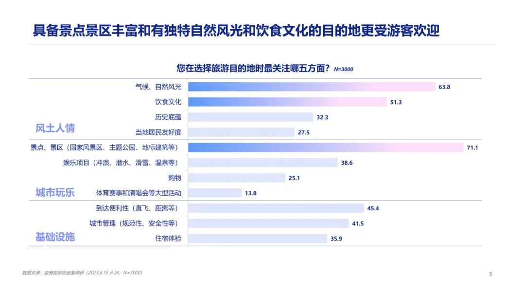 具备景点景区丰富和有独特自然风光和饮食文化的目的地更受游客欢迎