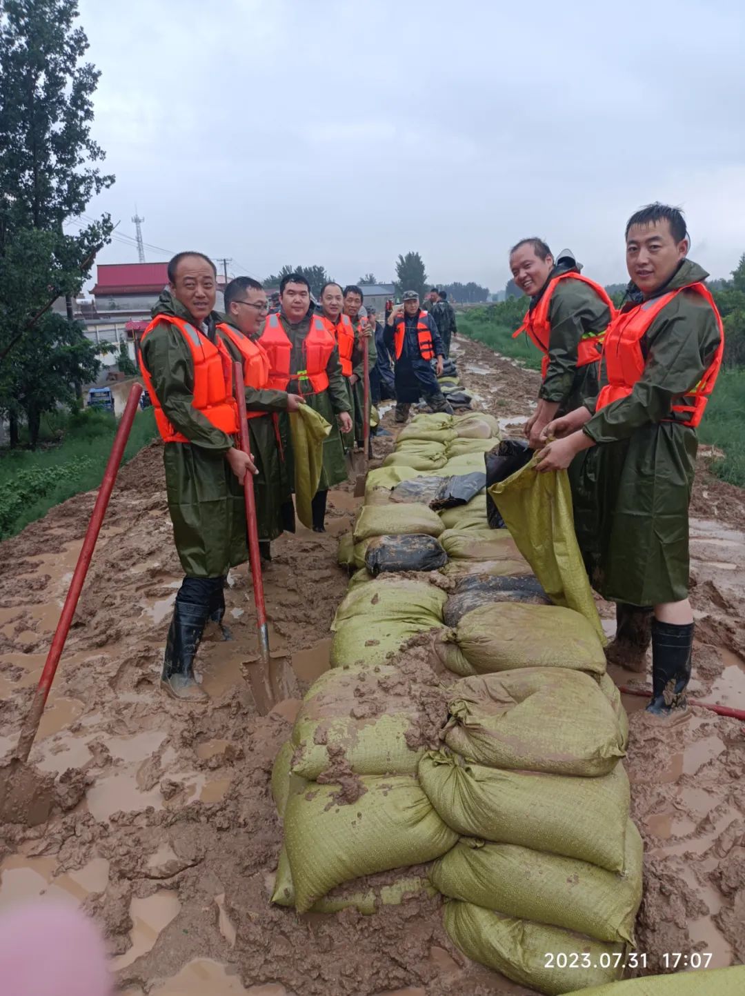 一方有难,八方支援,风雨无情,人间有爱。近日河北多地连续普降大到暴雨,高碑店市多地出现内涝、塌方、交通中断,给人民的生产生活和生命财产带来极大的威胁,高碑店市的防汛形势十分严峻。7月30日公司接到高碑店市武装部紧急通知:“高碑店市多地告急,需要民兵支援!”当天,正值双休日并有大部分员工在休高温假,在这种情况下公司党政领导立即组织动员,配备雨衣、雨鞋等防洪抢险装备,公司民兵排长、共产党员孙善营主动请缨,工程师周文礼铿锵有力、掷地有声:“我是共产党员,我报名!”… … 在他们的带动下,在岗和休假的庞晓鹏、申飞红、刘欢、陈洪伟、罗娇龙、霍雪勇八名同志组成了精明强干的民兵队,于31日上午奔赴抗洪一线。