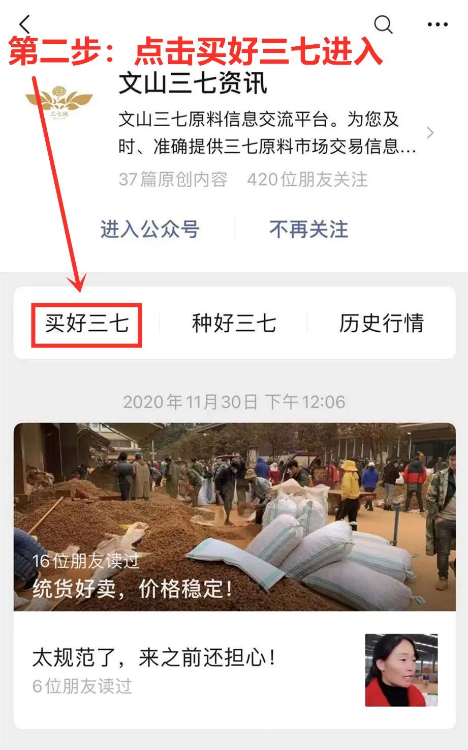 第一步:长按识别“文山三七资讯”公众号二维码进入页面