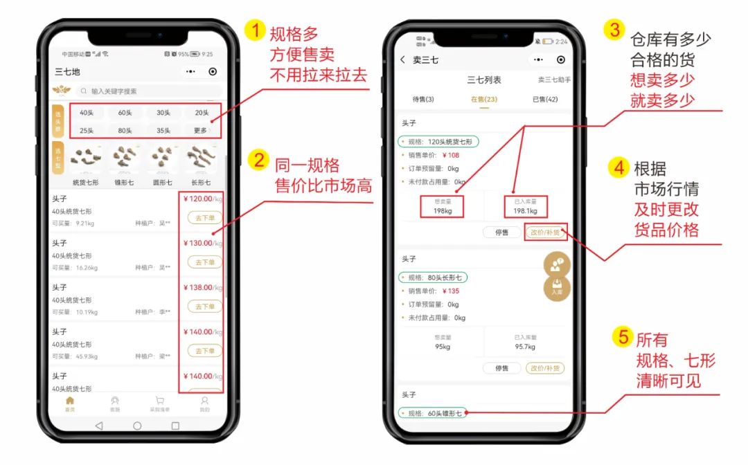 第一、帮助加工三七的老板卖三七:只要您的三七好,帮助您比拉到三七市场多卖钱;第二、您还可以在三七地平台上架卖三七:(1)想卖的数量、价格您决定;(2)药房、药企、医馆直接在平台上向您采购;(3)货款2天内付到您指定账户上;(4)卖出的数量、金额、库存等在您手机上全部可查询;(5)如果不想卖了,在手机上操作停售就可以,您不用费心、费力的把三七拉来拉去,同时可以增加您卖三七的收益。