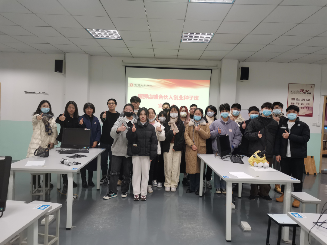 2022年12月,学校依托商学院&博洋党建共建平台召开唐狮店铺合伙人创业种子班宣讲会。唐狮吴经理向种子班同学讲述自己的职业发展经历,通过品牌发展史让大学生们深入体验企业运营的模式。会后,由唐狮方对有意向的同学安排职场面试、创业等方面的指导。