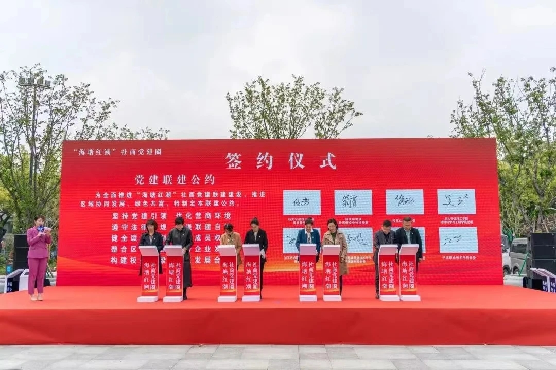今年4月,设计媒体学院党委代表学校与招宝山街道后海塘企业社区党委及招宝山商会党委签署党建联建协议书,正式加盟“海塘红潮”社商党建圈,并与企业进行校企联盟签约,深化校企合作,实现就业与培养有机联动、供需有效对接,提升人才培养适应性。