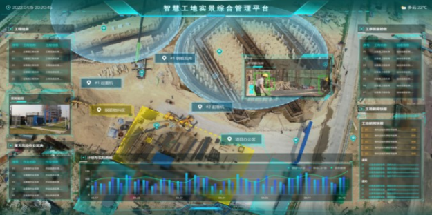 智慧基建平台门户综合展示基建项目的进度、成本、安全管理、现场作业情况、人员管理情况等相关智能分析结果,可支持自行组态的个性化智能分析,通过合理划分现场显示区域,通过门禁和监控视频、工作任务计划,人员分布、现场作业情况等数据智能联动、实时远程访问全面数据和现场视频摄像头、查看现场情况,更加全面,实时,准确的对整体项目/区域基建工作智能管控。