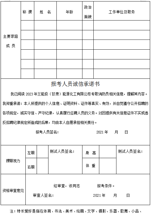 (1)下载并填写此公示后的附件1:《兰能化(甘肃)能源化工有限公司专职消防员报名登记表》;