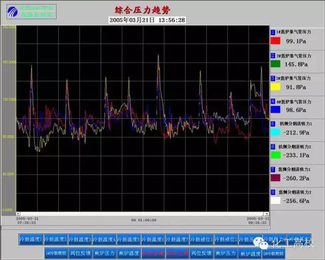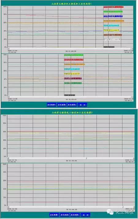 焦油加工过程中的核心控制是管式炉出口温度控制,经我DCS调节该出口物料温度的偏差可控制在±1至2℃左右,完全满足生产工艺的要求,从趋势图中可以看出,其它相关工艺也运行平稳。