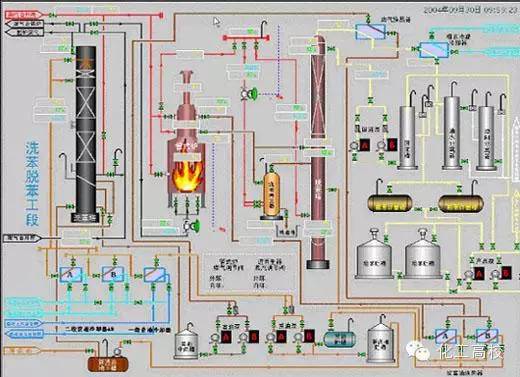 洗苯脱苯工段主要有两个控制回路和一个联锁控制:出管式炉富油温度调节和脱苯塔出口油汽温度调节。