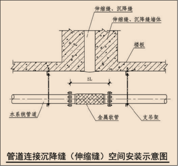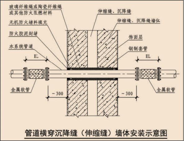 1. 管道横穿沉降缝(伸缩缝)墙体安装宜优先采用金属软管,不推荐采用橡胶接头。