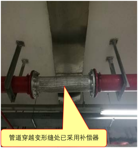2. 管道穿越伸缩缝(沉降缝)下方空间时,在缝下方安装一个补偿装置。