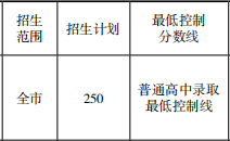 共招250人,对中考成绩的要求为普通高中录取最低控制线(即545分)