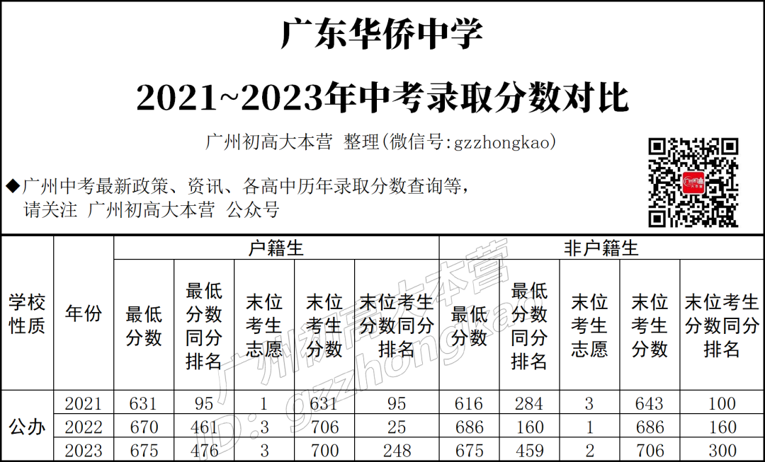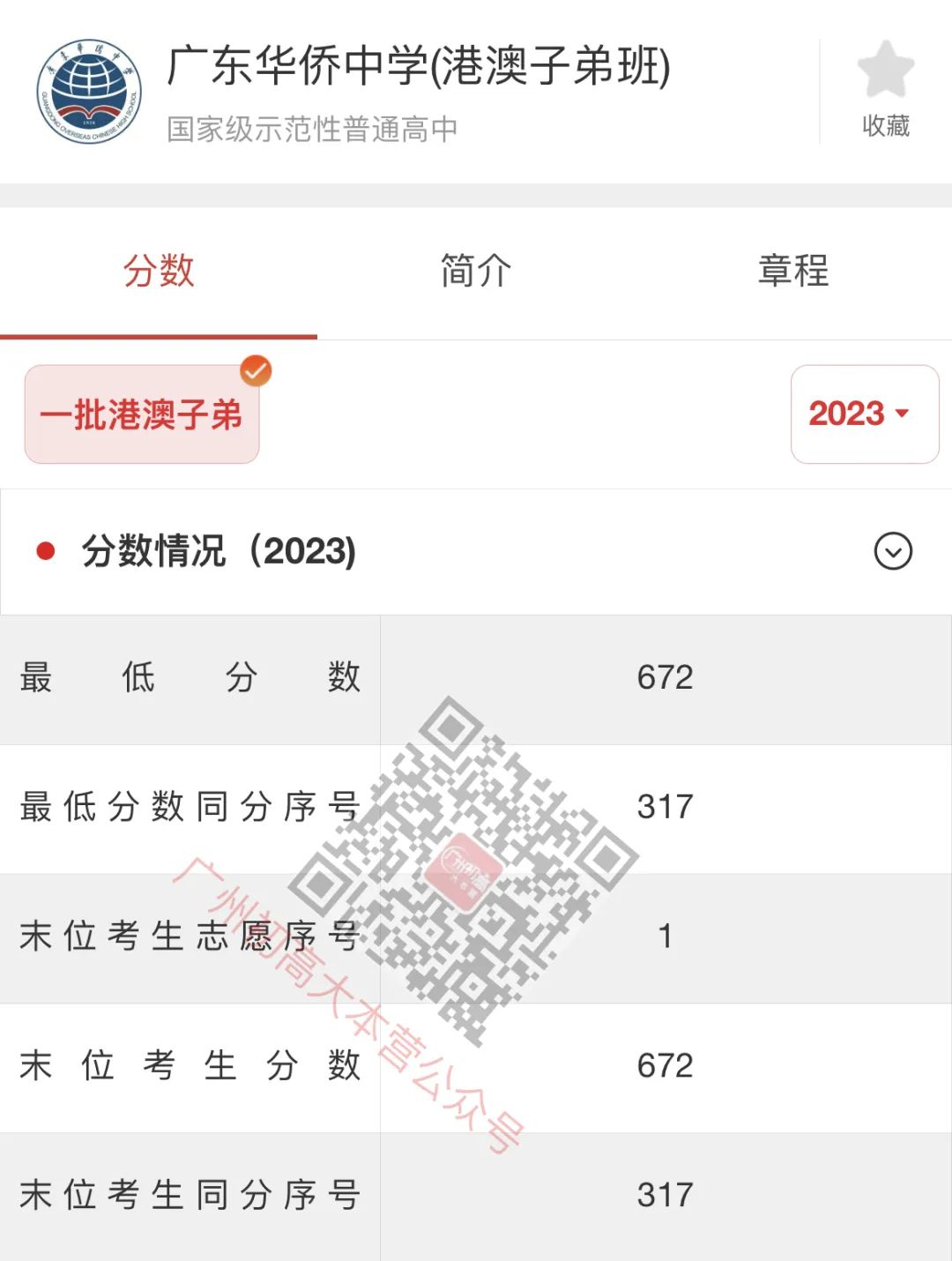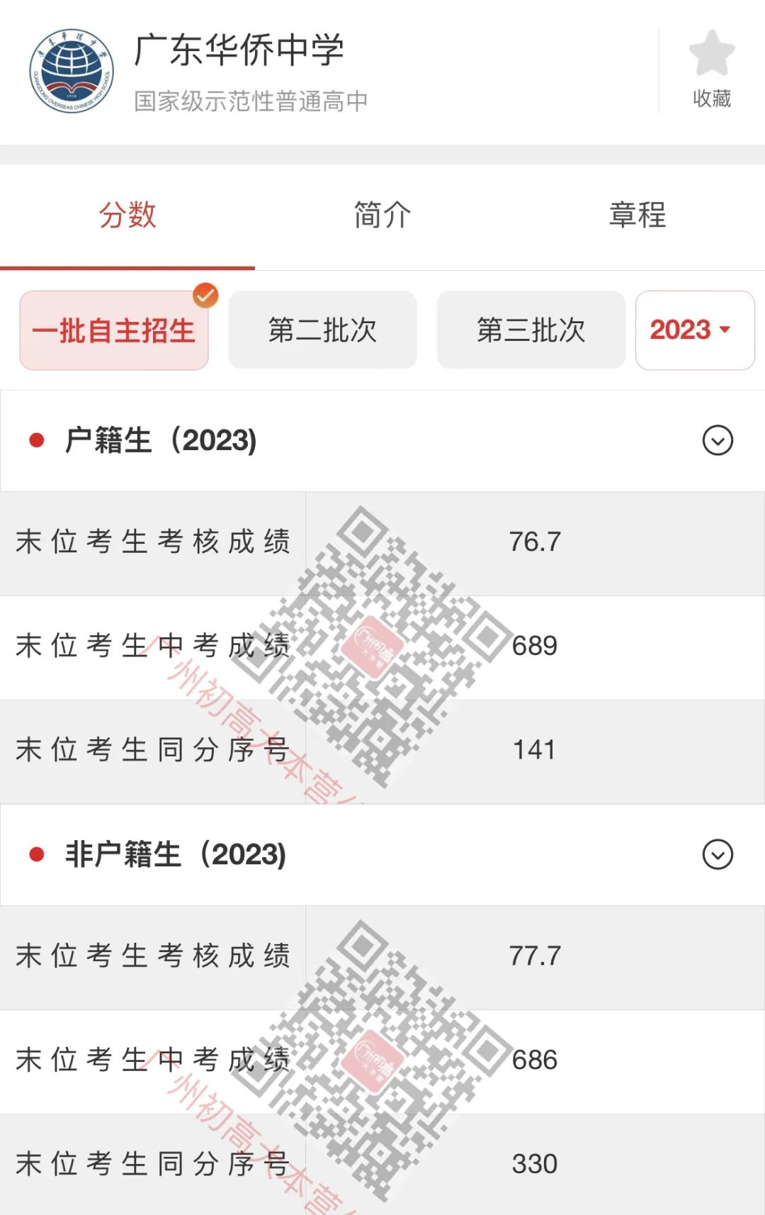 华侨(港澳子弟班)2023年自主招生录取分数如下(其他年份点下图可看):
