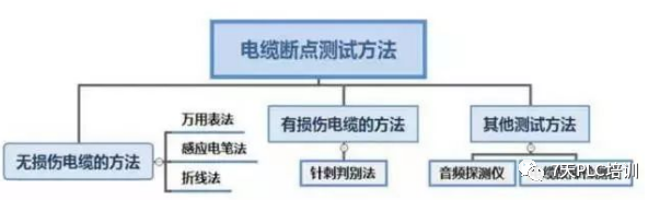 这种方法是利用电缆的通断来排查电缆的断点所在。将断点电缆上分段插入钢针,然后依次使用万用表测量通断状况。