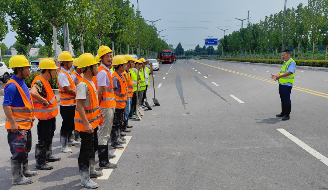 持续不断的暴雨导致项目部周边积水最深达到成年人胸部高度,路中的隔离带完全被淹没,现场情况十分危险。为防止意外发生,项目党支部安排专人在施工现场及周边道路进行安全巡视。