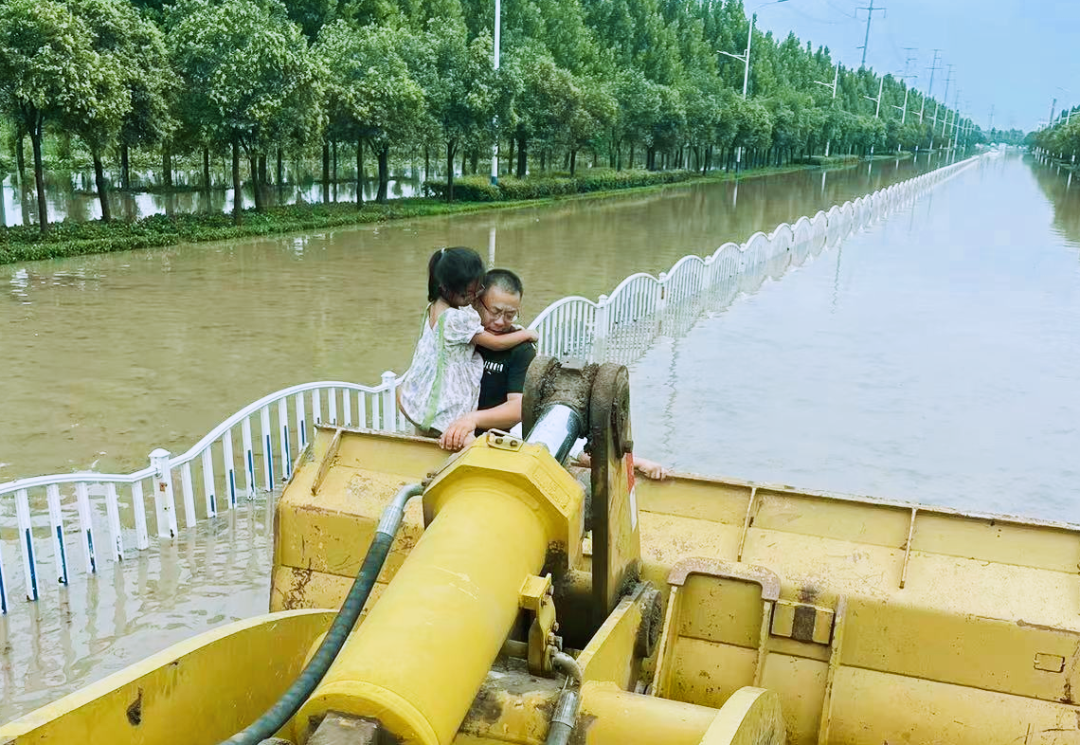在与车主沟通后,他们迅速砸开车窗,利用项目部自有铲车、挖掘机等设备将车内人员安全转移出深水区,随后又将熄火的车辆绑在铲车后面拖至安全地带。