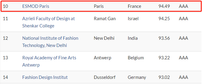 在ceoworld.biz官网公布的排行榜中,ESMOD入围了全球知名商业杂志《CEOWORLD》全球最佳时尚学院前10名!而且,ESMOD还是前十中唯一一所法国学府。