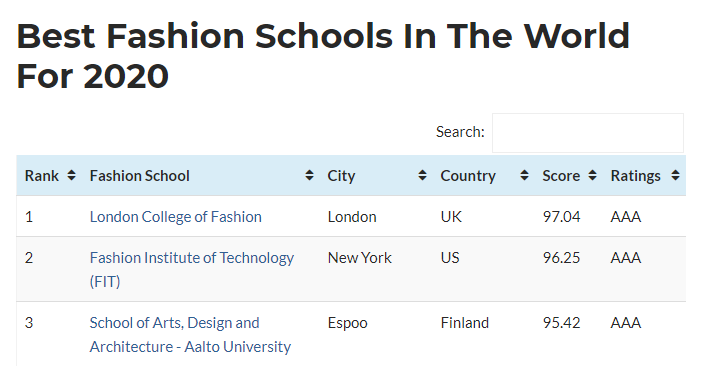 本次2020年全球最佳时尚学院前110排名的榜单,经过《CEOWORLD》杂志严格的分类打分过程。综合参考了学校的全球声誉和影响力、专业化程度、企业用人单位的反馈、工作安置率、入学资格和学术经验,由全球4万名学生、5万名行业专业人士和3万名时尚招聘人员,总计全球12万人收集的详细调查数据和信息。