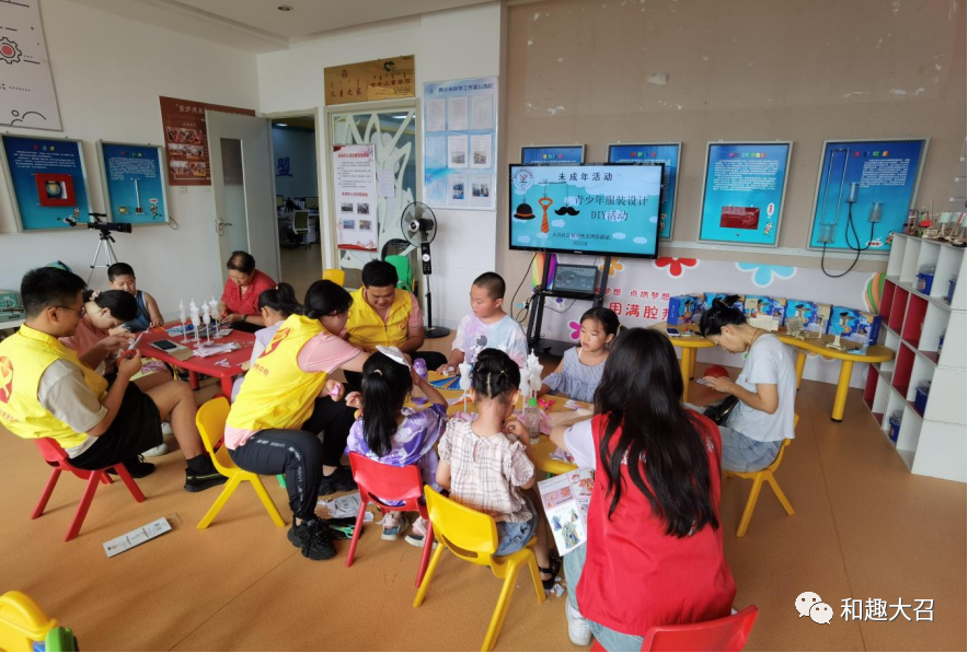 为了丰富社区儿童青少年的课余生活,让社区儿童青少年感受创作的乐趣。在2023年8月2日在大召社区三楼开展了一场“青少年服装设计DIY活动”。