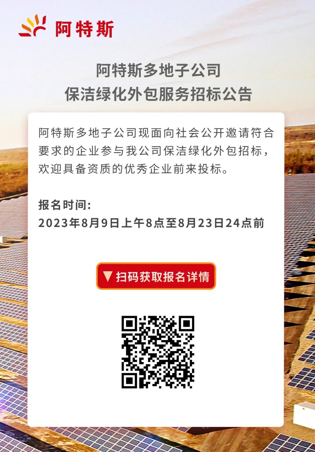 【招标公告】阿特斯多地子公司保洁绿化外包服务招标公告