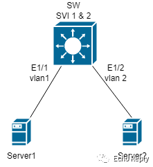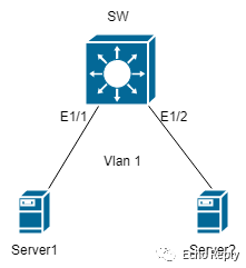 Server 1 和 Server 2 均在 Vlan1