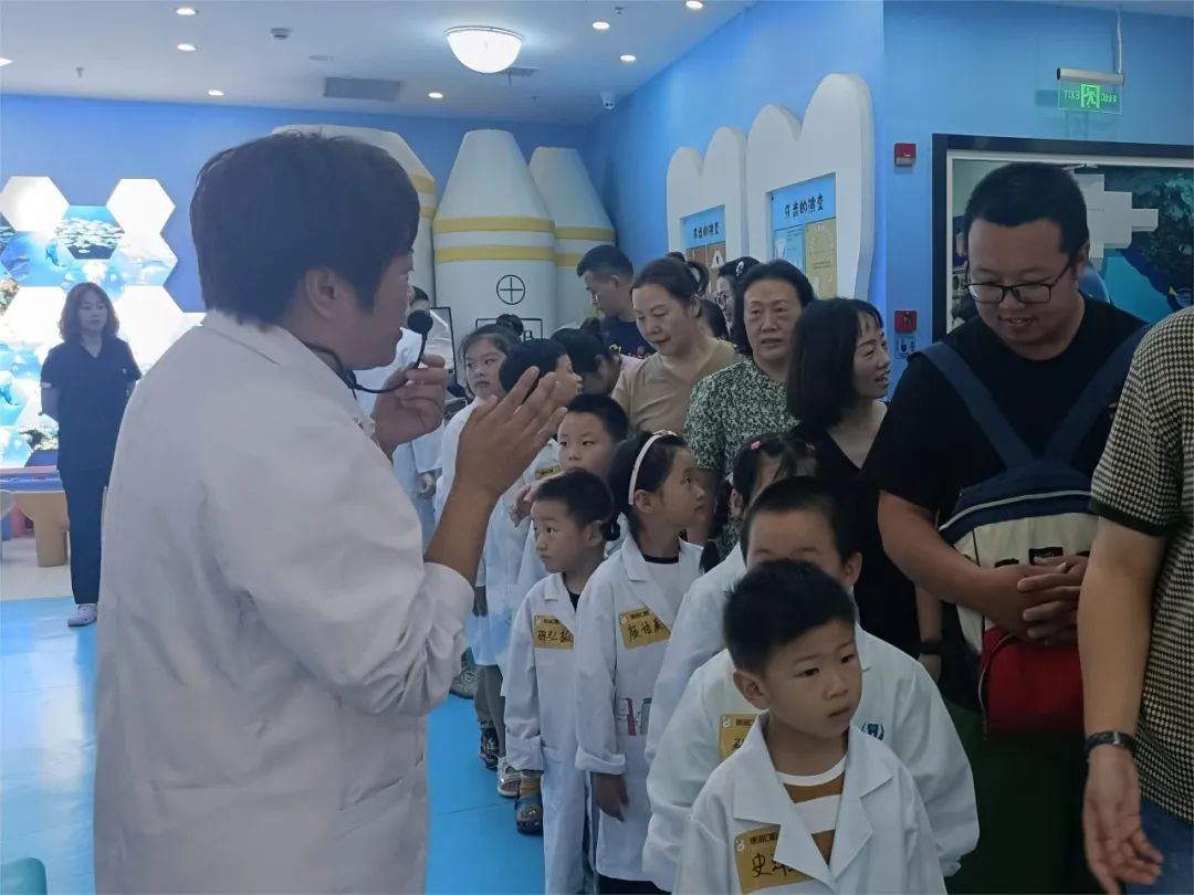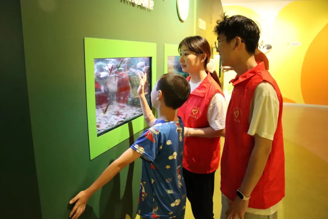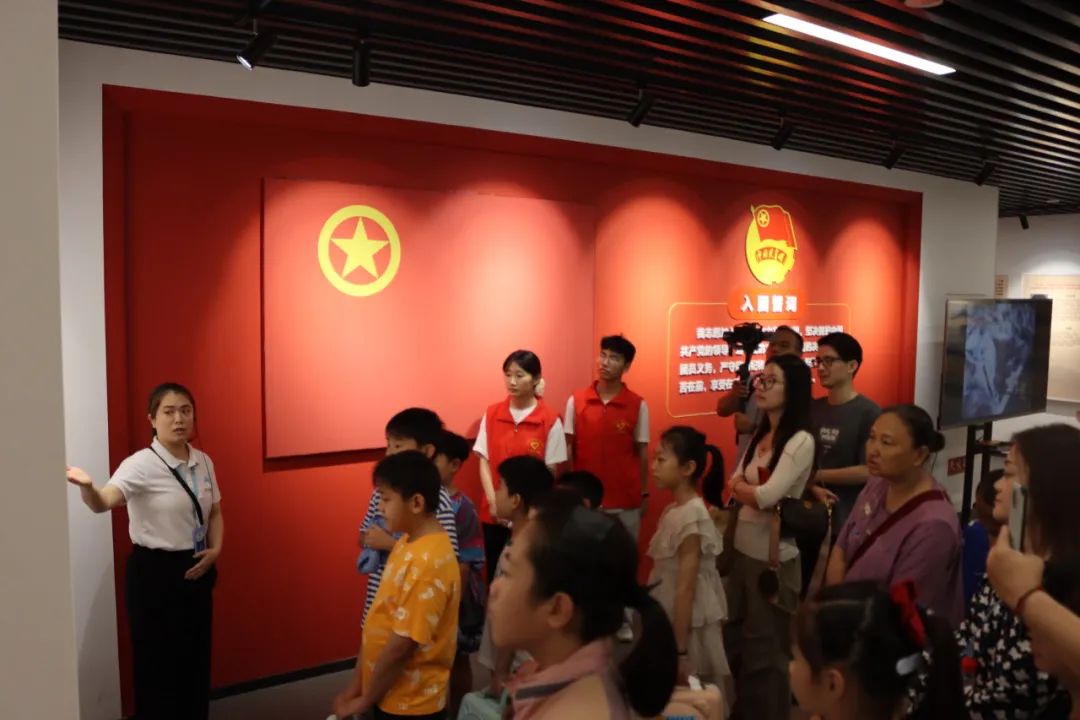 团队队员陪同暑托班的孩子们认真聆听团史馆工作人员对团的发展史讲解,维护好现场的秩序。随后,队员带领孩子们参观科技馆,感受丰富多彩的科技世界。