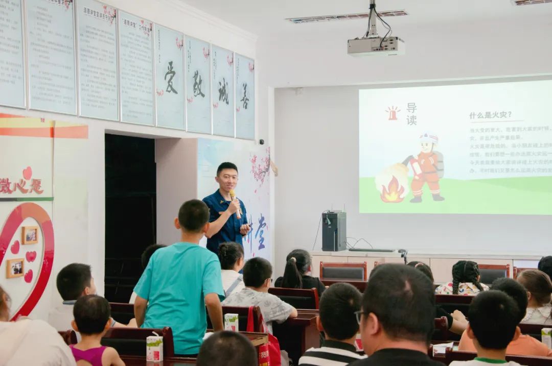 京口消防大队东吴站副站长王森给暑托班的小朋友们进行了火灾防护的安全第一课,王站长以幽默的语言教会了小朋友们认识火灾以及面对它时该怎么正确自救等知识。