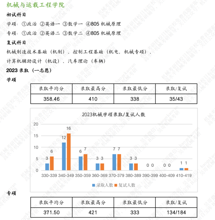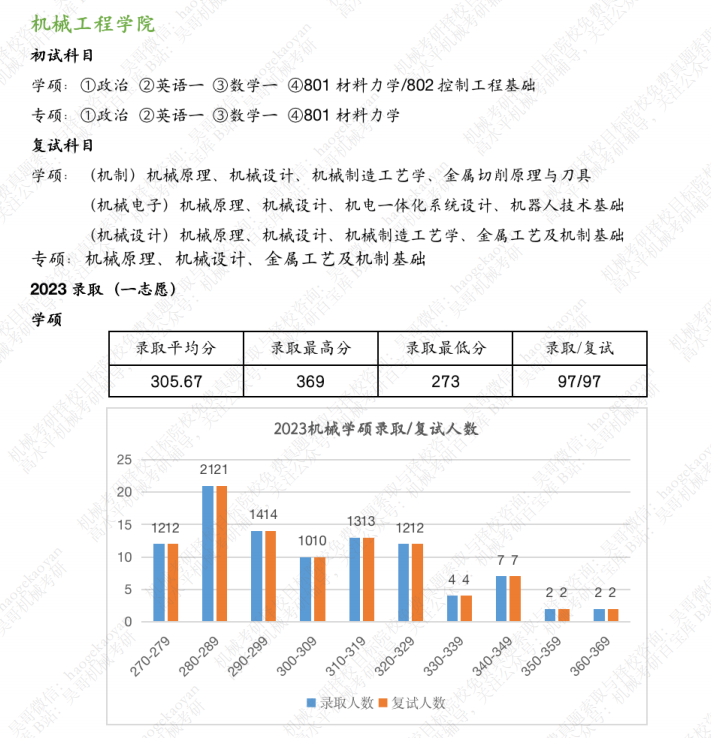 机械学硕初试录取平均分为305.67分,录取最低分为273分,进复试97人全部录取。基本每年过国家线就稳,可见初试成绩很重要。23年专业课难度较为稳定,专业课平均分100+,24年专业课应该不会有大的变化。