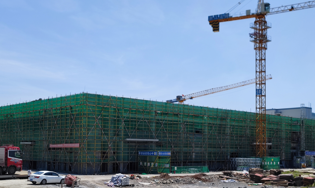 近日,在红花岗区深溪镇永安大道东侧的友联(贵州)包装科技有限公司年产1亿个精品纸箱投资项目施工现场,工人们正在施工,该项目一期工程主体已完成。