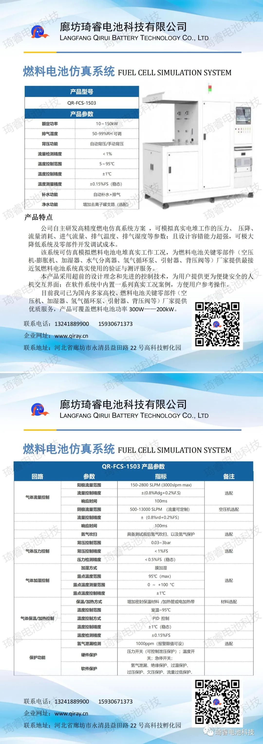 琦睿电池科技专注于储能及氢燃料电池发动机、仿真系统及相关关键零部件自主研发及产业化的技术企业。目前氢能事业部核心产品有燃料电池仿真系统、燃料电池增湿器、燃料电池离子过滤器、燃料电池水气分离器、燃料电池引射器、燃料电池空压机、燃料电池氢气循环泵等。