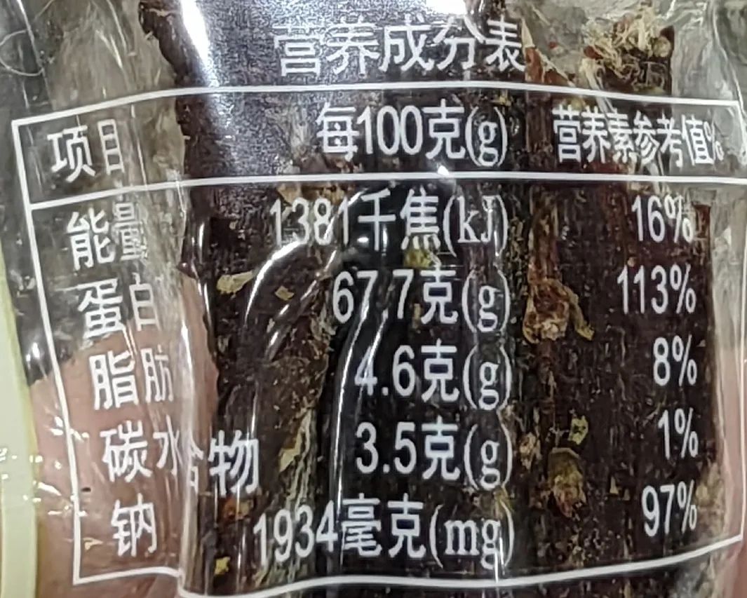 如上图,每100g该食品的钠含量为1934mg,钠的营养素参考值为2000mg,因此吃100g该食物后就最好不要吃其他含盐(钠)的食物了,否则就超过了膳食指南中钠的每日推荐摄入量。