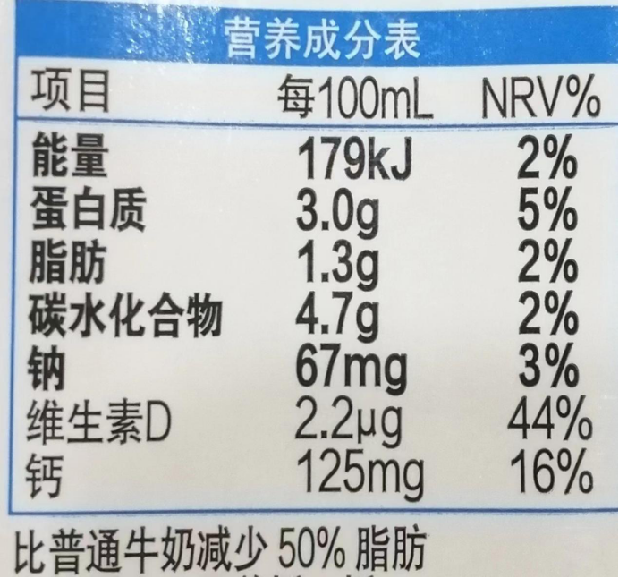 图为市售某款纯牛奶的营养标签