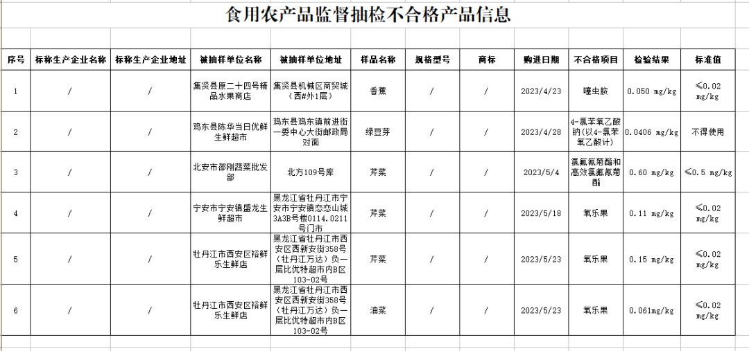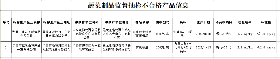 黑龙江省市场监督管理局关于15批次食品不合格情况的通告(2023年第19期)
