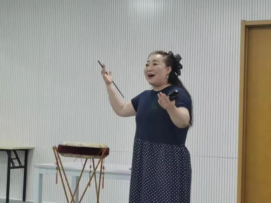 曲艺团演员龚秾老师精心准备,为同学们带来《祝愿词》、京韵大鼓《爱北京》、西河大鼓《偷年糕》,或轻松诙谐或大气磅礴,老师优美的唱腔、丰富的肢体语言、精湛的表演技艺展现出中华文化的无穷魅力,让同学们充分感受到曲艺文化的美妙之处,提升对中国传统文化的欣赏力和审美能力。