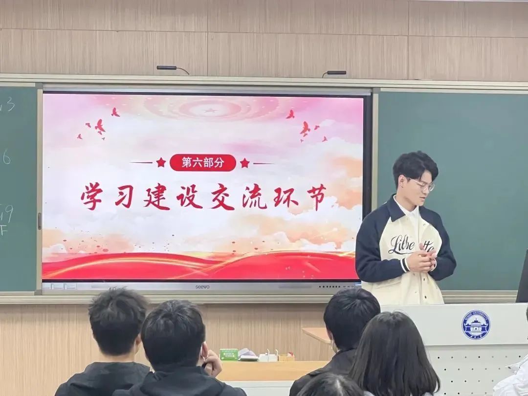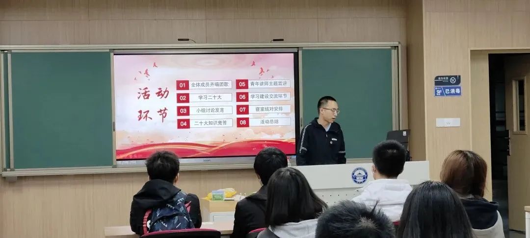 本次活动由21级彭宇轩与22级王竟霖共同主持。活动伊始,同学们齐唱团歌。接着王竟霖为大家解读二十大报告,并引导同学们互相交流讨论。同学们分组讨论,每个小组都由21级与22级同学组合而成,大家积极发表观点。讨论后各小组派代表发言,将二十大报告与自身专业学习实际相结合,积极回应习近平总书记的殷殷嘱托。