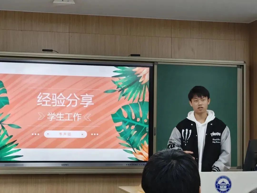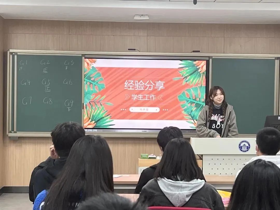 然后就到了学习交流环节。2108班的三位优秀同学从综测方案、学习方法、学生工作等多方面与22级同学分享经验心得,满满的干货让学弟学妹们收获良多。紧接着公布了寝室结对安排,21级与22级寝室两两结对,学长学姐们表示十分愿意帮助解决学弟学妹们的疑惑。