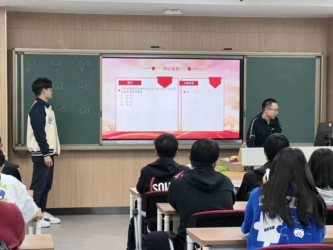 接下来进入了二十大知识竞答环节。选题既与党和国家的发展密切相关,又贴近生活常识,同学们举手抢答,场面十分精彩刺激。最终排名靠前的小组获得了小奖品,大家收获满满并乐在其中。