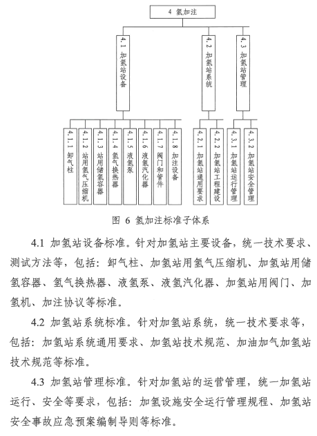 在氢加注方面,主要包括加氢站设备、系统和运行与安全管理等方面的标准,推动加氢站安全、可靠、高效发展相关标准的制修订;