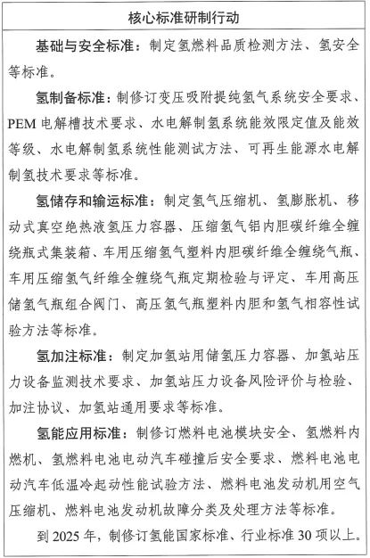 《指南》明确了近三年国内国际氢能标准化工作重点任务,部署了核心标准研制行动和国际标准化提升行动等“两大行动”,提出了组织实施的有关措施。
