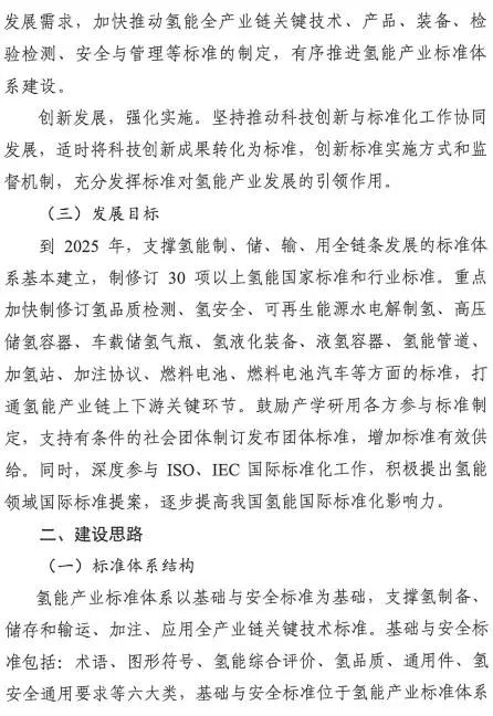 为贯彻落实国家关于发展氢能产业的决策部署,充分发挥标准对氢能产业发展的规范和引领作用,近日,国家标准委与国家发展改革委、工业和信息化部、生态环境部、应急管理部、国家能源局等部门联合印发《氢能产业标准体系建设指南(2023版)》(以下简称《指南》)。这是国家层面首个氢能全产业链标准体系建设指南。