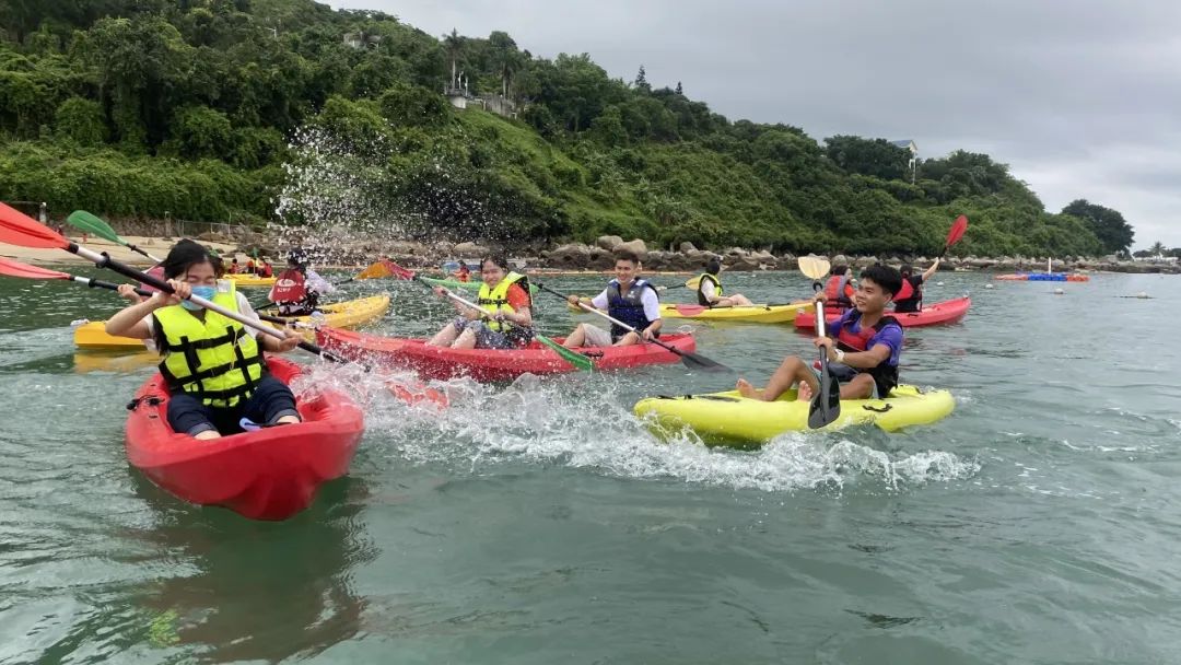 ②【自由练习】在教练专业讲解后,成员到指定水域练习皮划艇的基本技巧,团队成员间在练习的过程中相互帮助、取长补度、共同进步,掌握基本的皮划艇技巧的同时,还可以增进成员间的感情,使彼此更加了解。