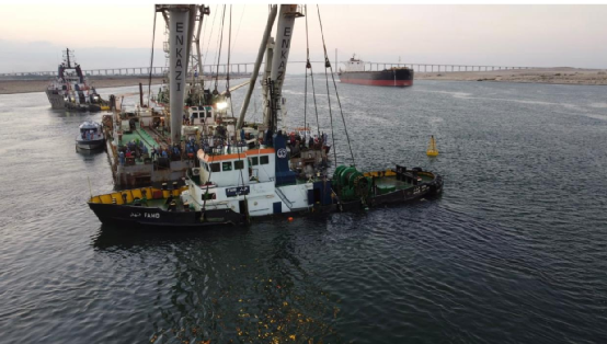在苏伊士运河被油轮撞沉的“法赫德”号成功打捞出水