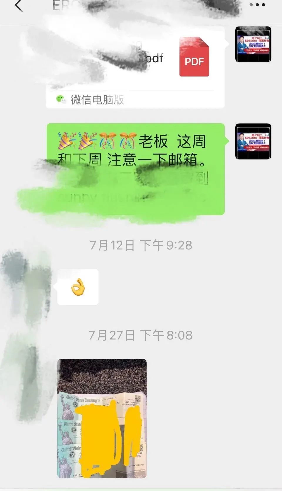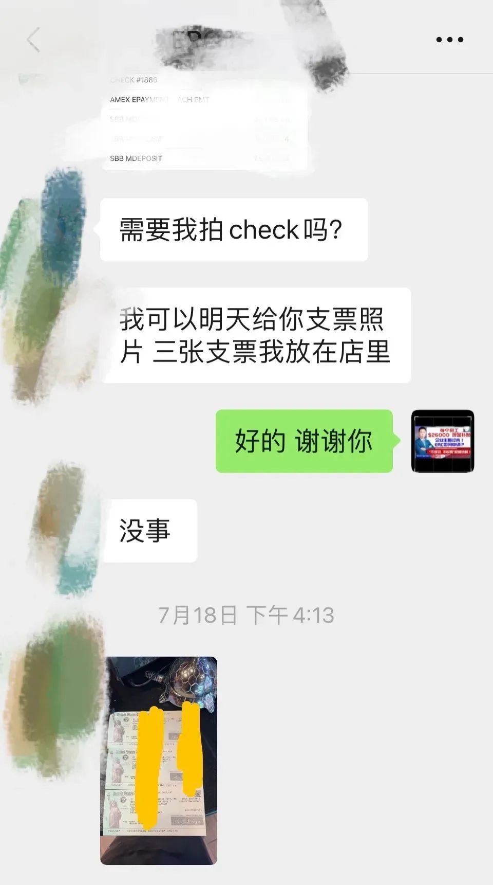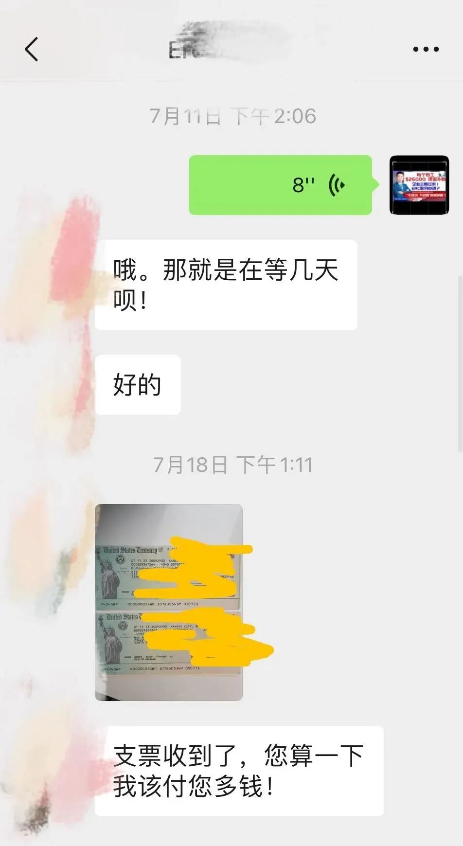 7月份最新客户收到支票 案例分享: