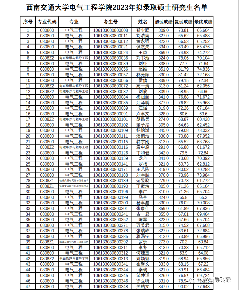 西南交通大学2023第1批国网录取名单
