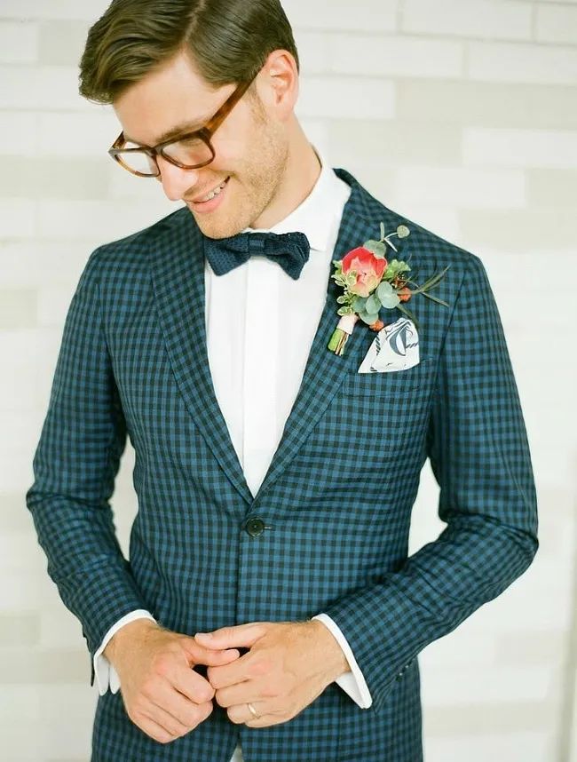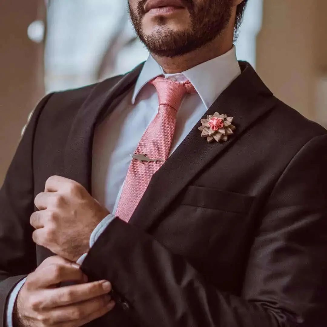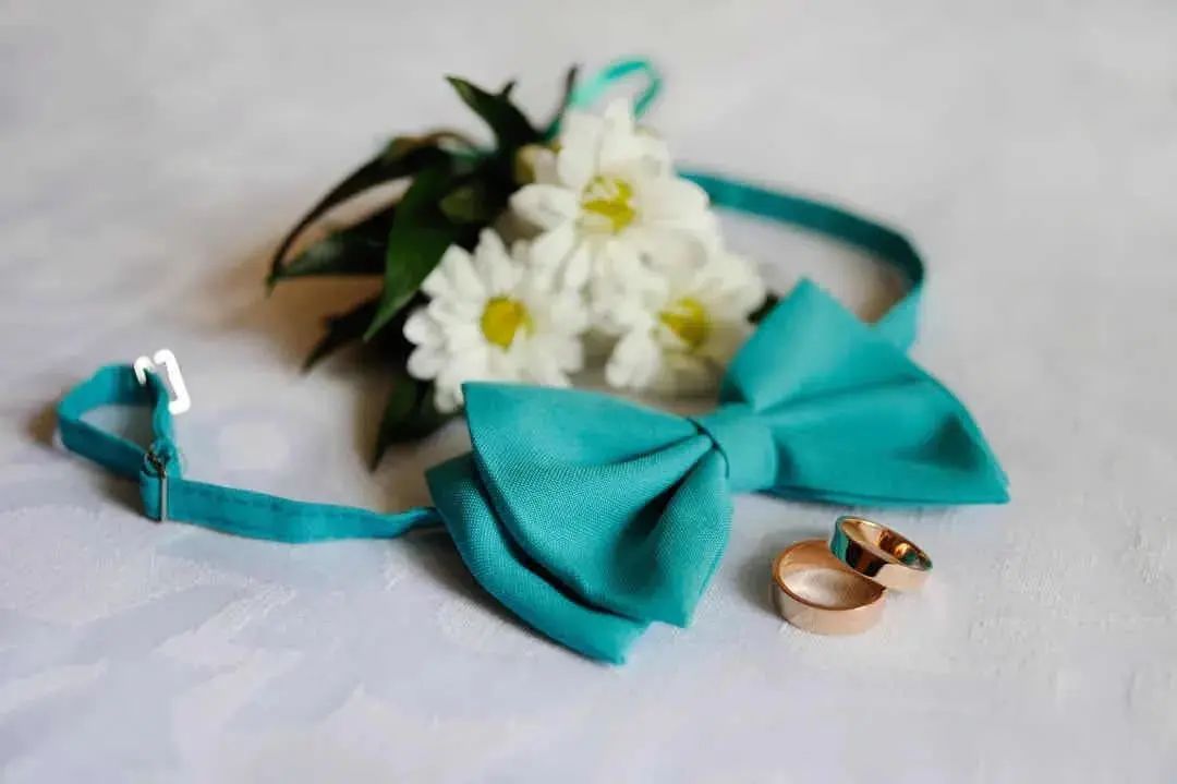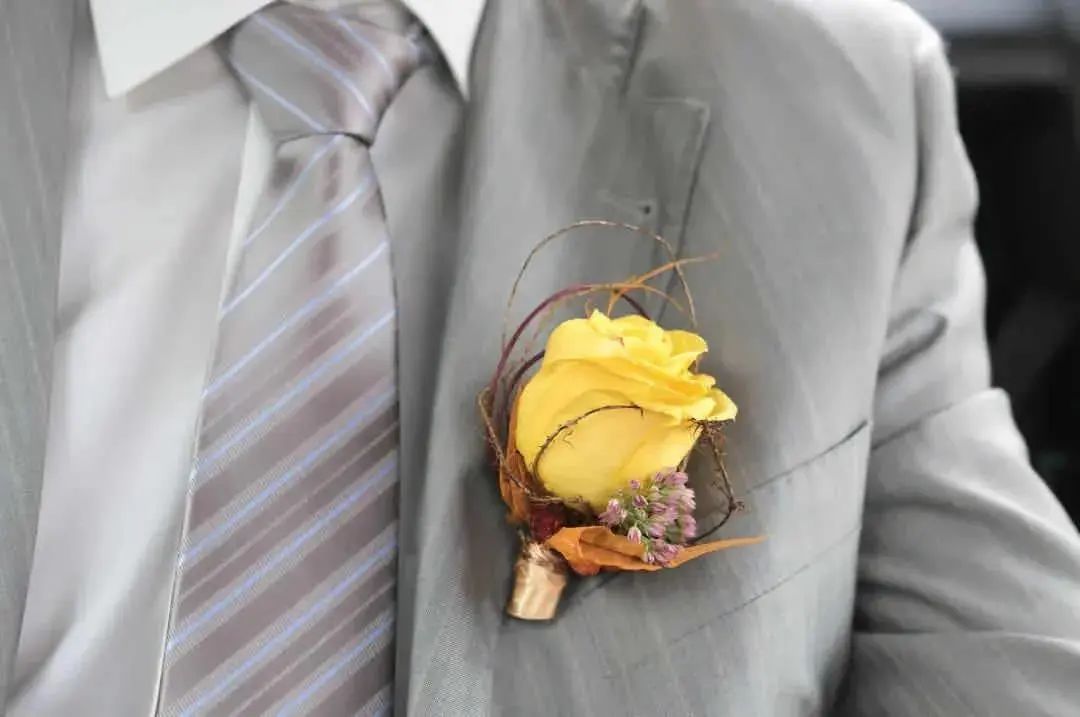 领带的材质选择也很重要!市面上的领带材质主要分为真丝、针织、亚麻、纯棉等,不同材质的领带搭配出的效果也各具特色。对于新郎来说,领带最好是选丝质的,它自带的光泽感与礼服西装组合瞬间营造出高级质感,把新郎的魅力发挥到极致。至于内搭的选择,白衬衫是最简单又不会出错的搭配方法,任何花色的领带都可以轻松驾驭。如果说西装是新郎的华服,那领结就是为其锦上添花的“最佳伴侣”。一直以来领结都是高贵的象征,主要用于正式场合的装饰作用。与领带相比领结的知识和搭配常常会被我们忽视,今天为大家详细地介绍一下领结的“前世今生”。领结起源于17世纪欧洲战争时期的克罗地亚雇佣兵,他们使用丝巾围绕颈部以固定领口,这方法逐渐被法国上流社会所采用。在一次宴会上法国国王路易十四发现一位大臣上朝时脖颈间围了一条白色的围巾,还打上了一个漂亮的结,于是大加赞赏,就这样,领结被赋予了高贵的象征,并开始流行至今。领结的颜色,一般来说,白色、黑色是最百搭的,白色显得更加庄重,能够让新郎很好和伴郎团做区分。藏青、宝蓝等深色系西装+同色系领结或是黑色领结,也是婚礼的保险搭配。领结的款式也有很多种如: 经典结、蝴蝶结、钻石结等。经典结是最经典的领结款式,也是最常见的款式,宽度在5.5-7厘米之间。如果新郎们不知道自己适合哪种款式,选经典结准没错,因为它基本上适用所有场合时配戴。钻石结的形状偏向菱形,形状就像钻石一样精致有型,这种领结可以选择颜色及纹路较花哨的面料来制作,如果你的新郎是喜欢变化,性格活泼的年轻人,那么这款领结会更适合他。对比起领带,领结的出错几率会更少,而且相对于其他的饰品也更为灵动便捷。袖扣可谓是精致男士的必备物件,在穿搭上来说,佩戴袖扣是需要穿着叠袖衬衫,为此你可能还要准备几件不同的衬衫。可能大家会觉得麻烦,但对于很多要求着正装出席的正式场合来说,袖扣则是必备的配件。常见的袖扣多为金属材质,造型简洁的几何袖扣,成熟稳重,搭配性强,这种袖扣对于男士来说是一个最稳妥的选择。还有一种就是镶嵌宝石的袖扣,造型新颖别致,比较适合年轻、活泼的男士。袖扣在颜色的选择上应该与男士身上其他的配饰呼应,但如果实在统一不了色彩,那爱酱建议可以将皮带扣、领带夹与袖扣同色。为了方便,也可以选择大品牌的套装产品,让皮带扣、领带夹、袖扣相互辉映。婚礼上新娘是全场最美丽的焦点,新郎也是最帅气的绿叶,而胸花恰恰就是新郎结婚当天与新娘捧花呼应的最佳点缀。胸花,小服相信很多人都以为把它别在胸前就可以了,其实不然,胸花佩戴也是有要求的。按传统的绅士西服着衣法则,西装的上衣口袋只能放置口袋巾,胸花则须别在西装外套的左领。考究的西装在左领的位置会有个扣眼,就是专门设计来放胸花的。如果没有现成的扣眼,就把胸花别在西装左领之上,花梗垂直向下,对准鞋子的位置即可。新郎在选择胸花时应以简单、小巧为原则,如果想要展现自己的个人品味也可以选择领带上的某种色彩作为主色调,就可以让新郎的整体造型魅力十足。新郎如果更加注重与新娘捧花的搭配,那么就可以选择同一种花材,或是同一色系。如果新郎是喜欢追求个性的话,也可以选择鲜艳且有造型感的胸花,不过需要注意不要抢了新娘的风头哦!婚礼上除了娇艳可人的新娘,新郎同样是主角哦,所以当你为自己选择完美美的婚纱与各种首饰之后,也千万别忘了身边的新郎!不要让他们挠破头都不知道怎么搭配,记得把这篇文章分享给他多学习几遍。