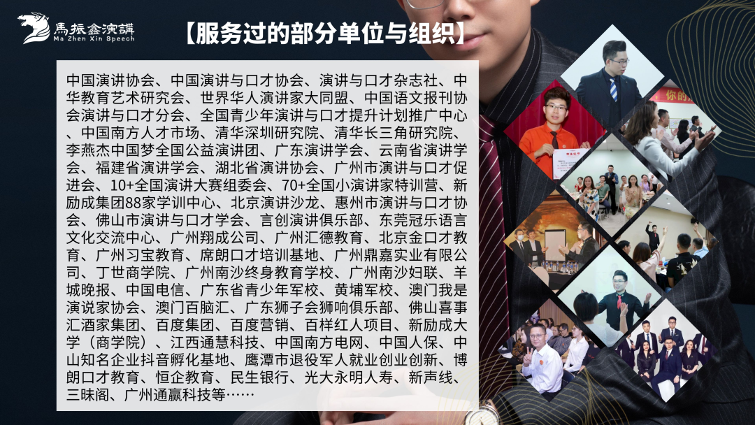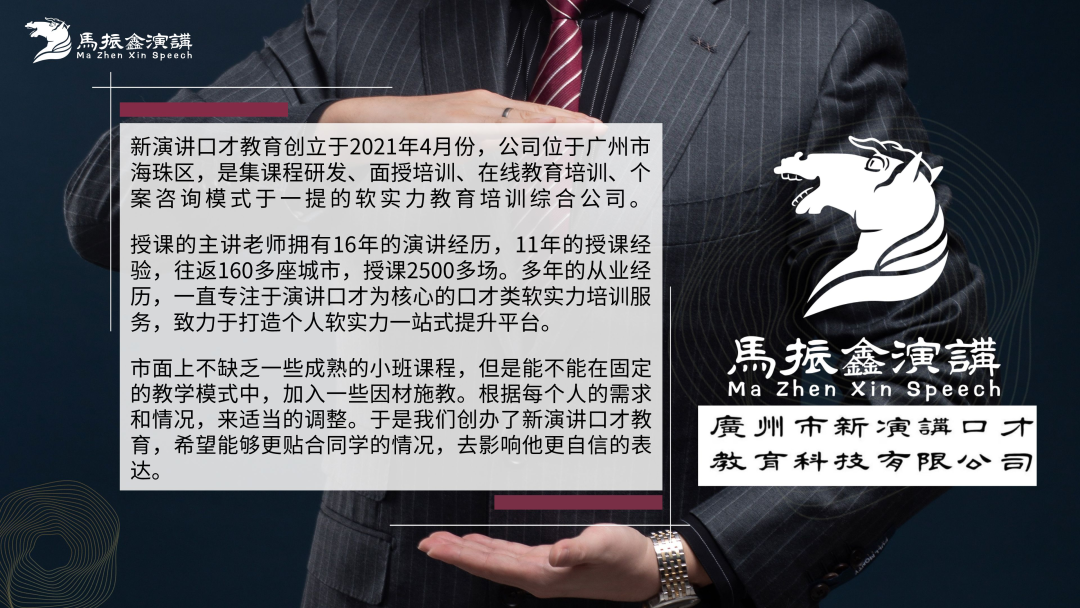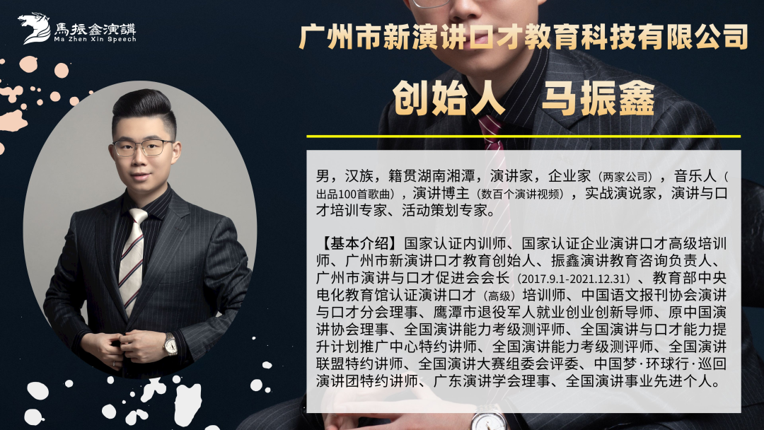 我是湖南生物机电职业技术学院2013届的学生马振鑫,现就职于广州市新演讲口才教育科技有限公司,担任公司的创始人。