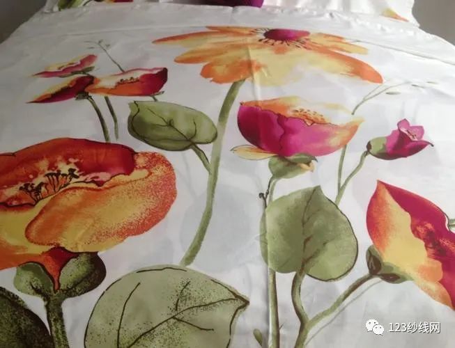 识颜色:涂料印花颜色不鲜亮,色彩暗淡,给人一种颜色是浮在布面上的感觉。就像在墙上刷了一层涂料。