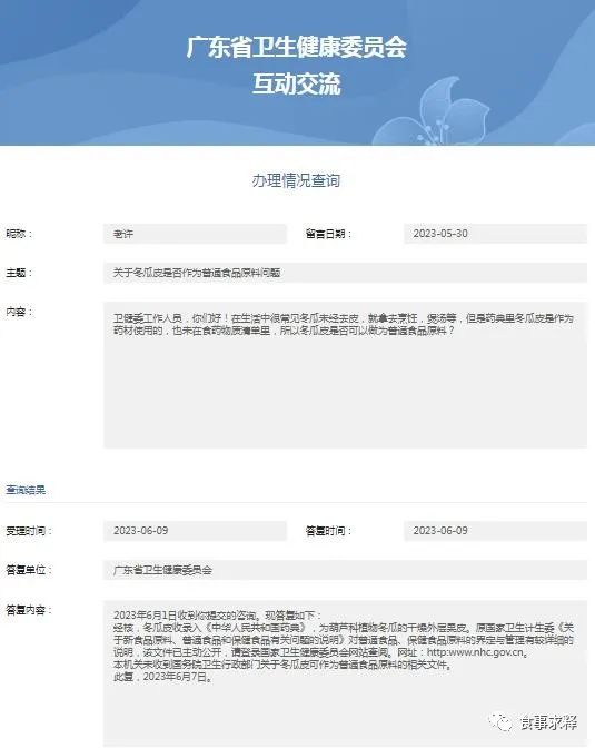 卫健委工作人员,你们好!在生活中很常见冬瓜未经去皮,就拿去烹饪,煲汤等,但是药典里冬瓜皮是作为药材使用的,也未在食药物质清单里,所以冬瓜皮是否可以做为普通食品原料?