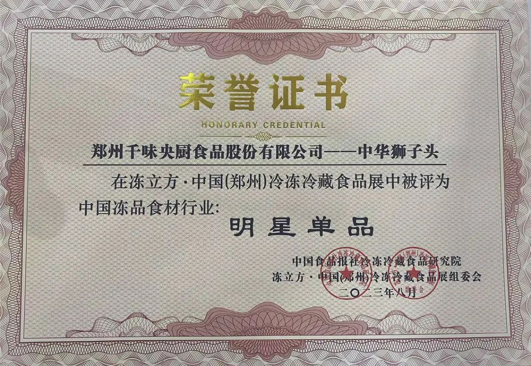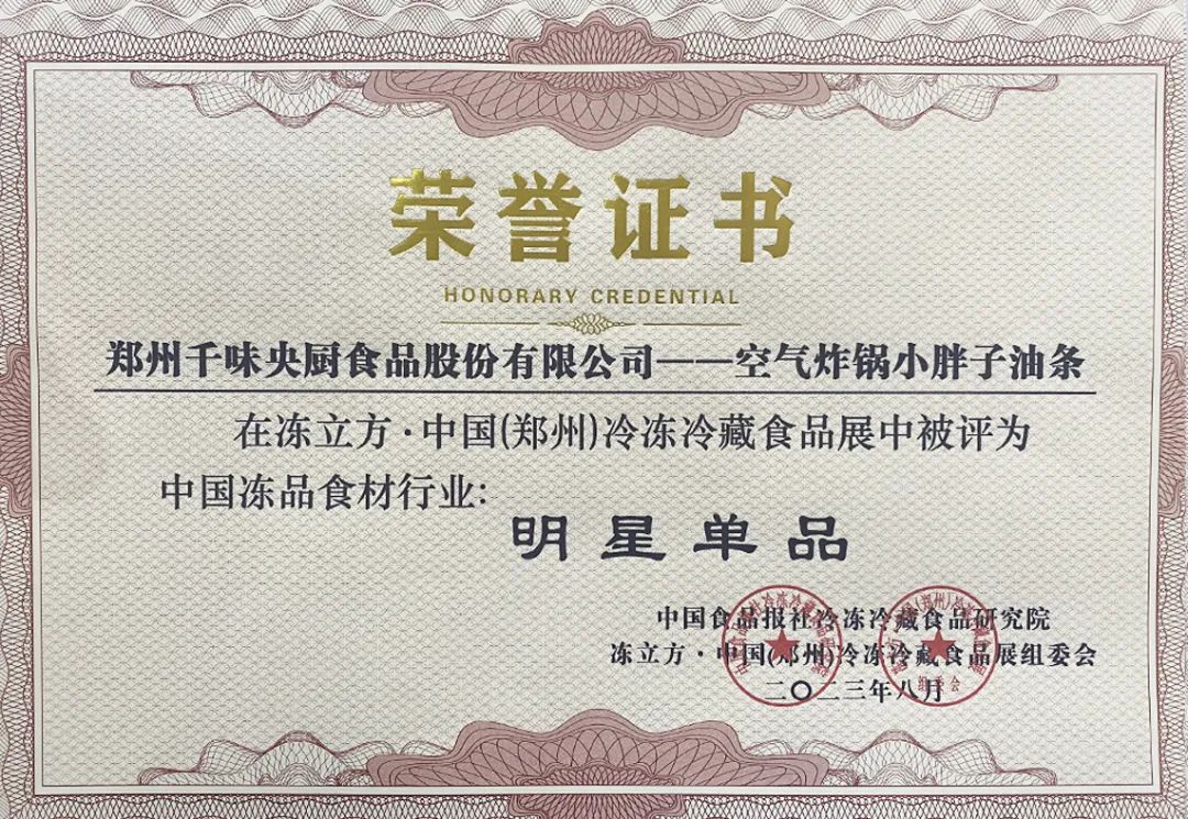 8月9日,在中国预制菜产业“百企千品”推介会上,千味央厨大单品——空气炸锅小胖子油条、奶油味夹心脆皮卷、糯米东坡肉、中华狮子头获得中国预制菜“明星单品”荣誉称号,奖项实至名归,获全行业认可。