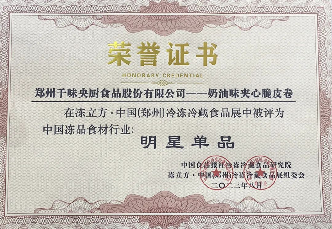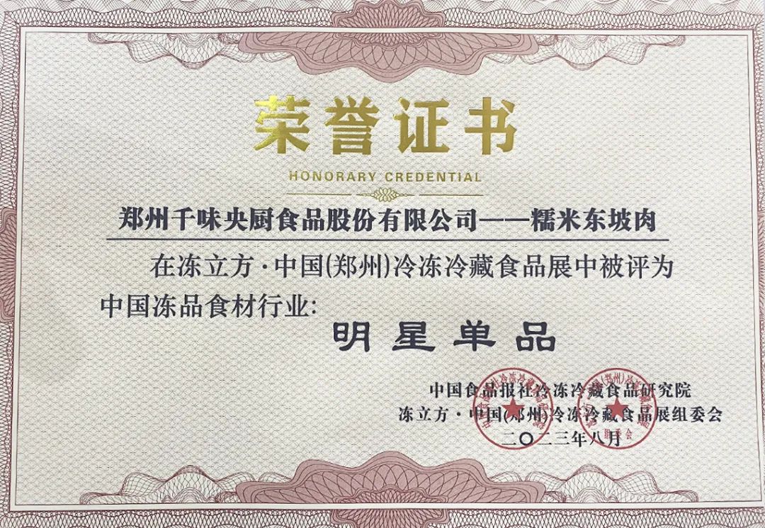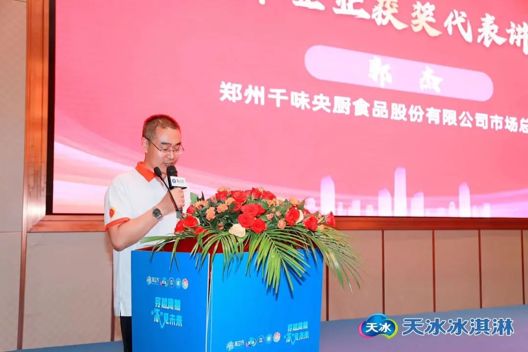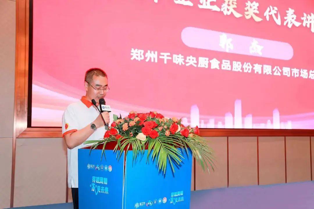 8日7日,郑州,一场主题为“穿越周期 冻见未来”的第十六届中国冷冻食品千商大会召开,这是冻品行业的年度盛宴,吸引行业专家、企业大咖及冻品行业经销商数百名,嘉宾观点碰撞,干货满满。晚宴上,千味央厨获得了主办方颁发的“中国冻品食材行业领军企业”荣誉称号。作为获奖代表,千味央厨市场总监郭杰发表感言:这是对我们企业长期以来成长与发展的认可,更是激励我们继续追求卓越的动力。“千味央厨始终将客户的需求放在首位。在多年的发展中,千味央厨始终秉承着‘只为餐饮 厨师之选’的定位,致力于为市场提供安全、美味、便捷的产品。凭借着严格的品控体系、先进的生产设备以及不断创新的产品研发,我们取得了显著的成绩。我们将倍加珍惜这份荣誉与奖项,继续不断努力,为冷冻食品行业的发展做出更大的贡献!”△千味央厨市场总监郭杰