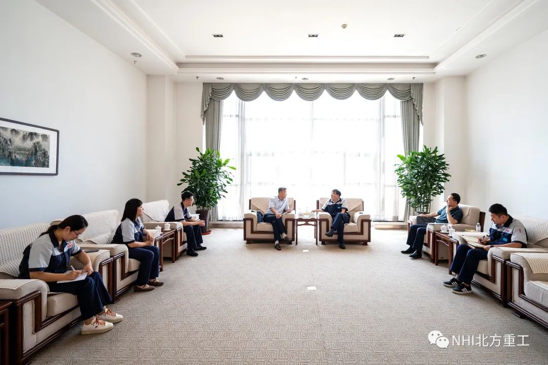 2023年8月9日,沈阳市总工会机械轻化工会主席王洋、副主席李恩东一行到北方重工调研指导工作,北方重工董事长孙贵臣、工会主席卜睿热情接待。