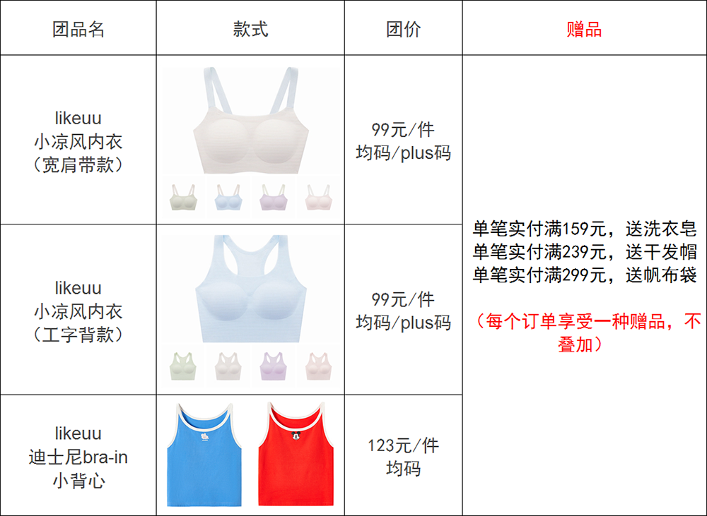 这次夏款内衣只有“均码”和“plus”两个号,选起来很简单,看图就会了。